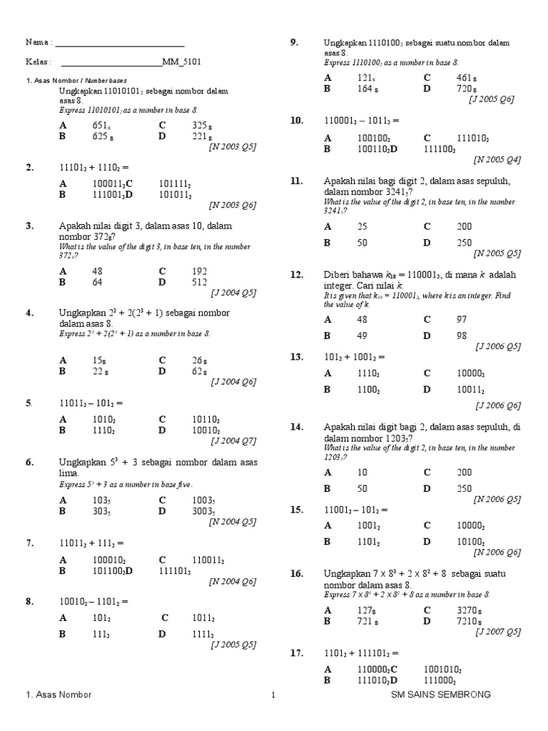 1 5 Penukaran Nombor Ke Asas 10 Bahagian 1 Spmflix Com Free Spm