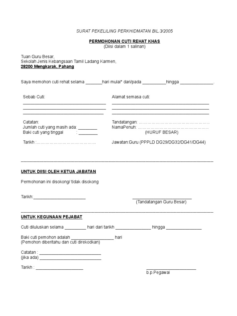 Surat Permohonan Cuti Rehat 0 Descargar