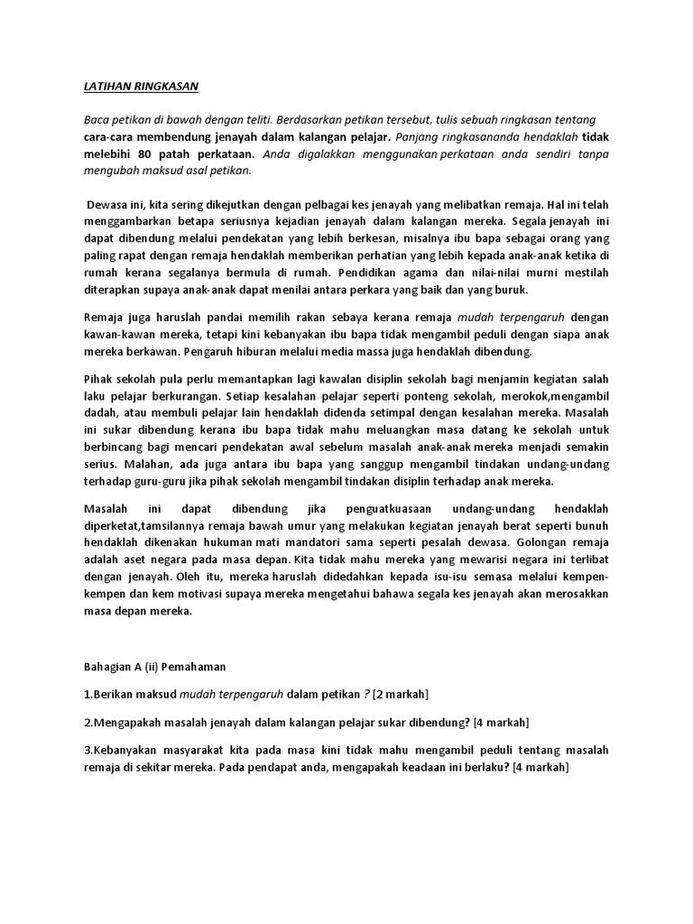 Contoh Soalan Ringkasan Karangan Tingkatan 1 I Soalan