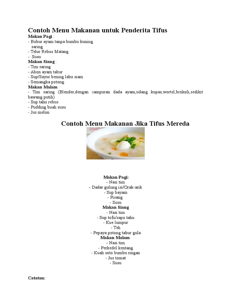 Contoh Menu Makanan Untuk Penderita Tifus