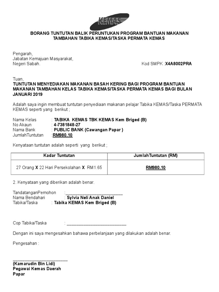Tabika Kemas Pusat Latihan Kemas Docx Tabika Kemas Pusat Latihan Kemas Jalan Melor Bukit Baru 75450 Melaka Kepada Pengerusi Ahli Jawatankuasa Course Hero