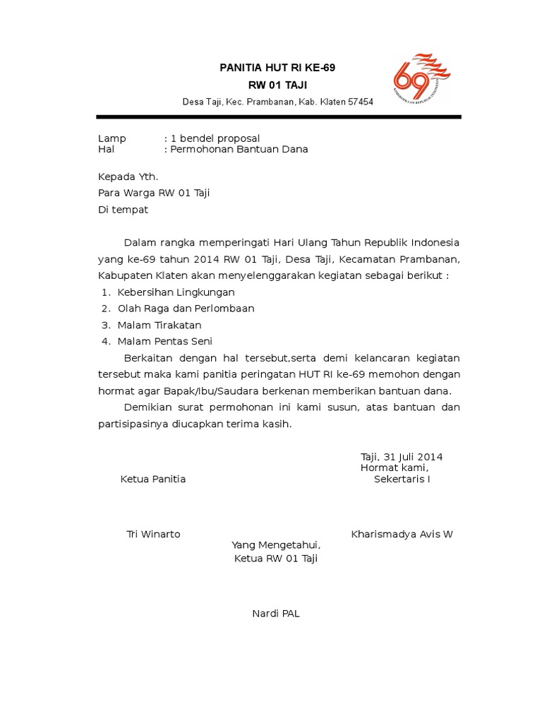 Contoh Surat Permohonan Bantuan Dana Dan Proposal Kegiatan Hut Ri Surat Proposal Tesis