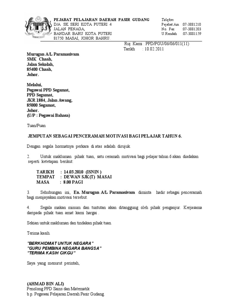 Contoh Surat Jemputan Penceramah Pendidik2u
