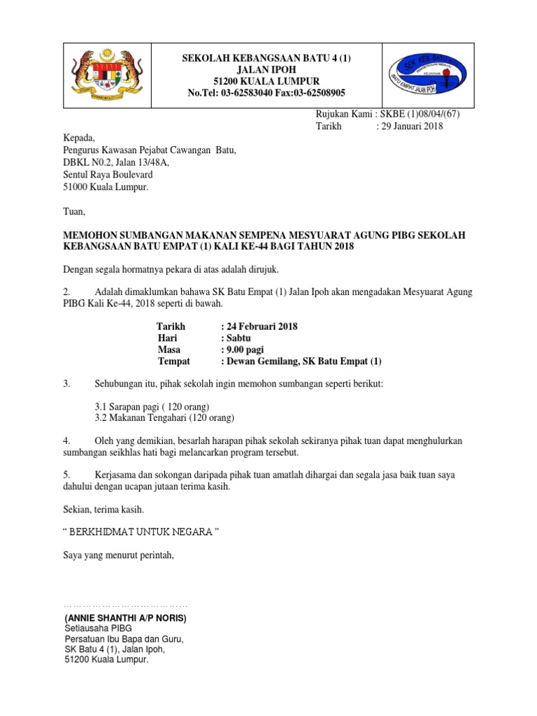 Surat Rasmi Permohonan Sumbangan Pibg Persoalan N