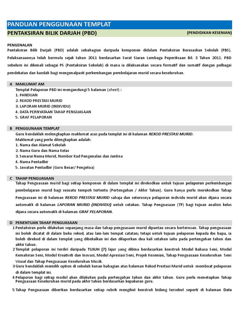 Templat Pelaporan Pentaksiran Bilik Darjah Pbd Versi 3 0 Baru Pendidik2u
