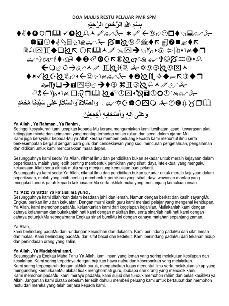 Doa Majlis Restu Pelajar Pmr Spm Edisi Sendiri