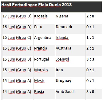 Hasil Piala Dunia 2018