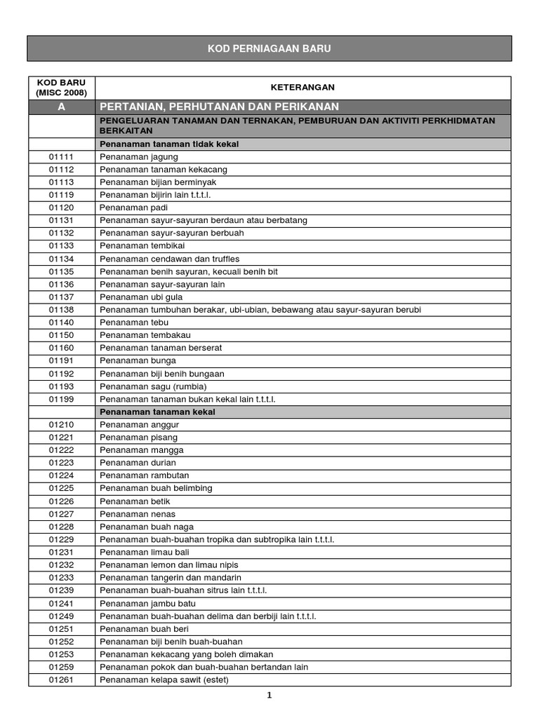 Kod Perniagaan Lhdn 2018