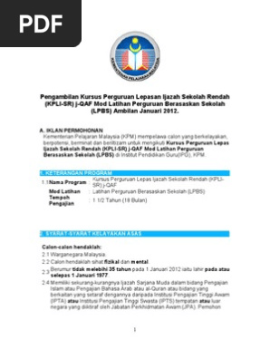 Pengambilan Kursus Perguruan Lepasan Ijazah Sekolah Rendah Kpli Sr J Qaf Ambilan Jan 2012