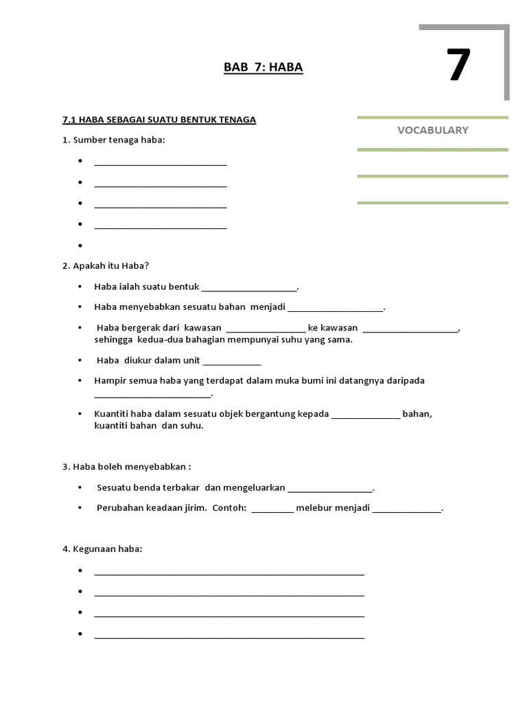 Handouts Bab 7 Sains Tingkatan 1