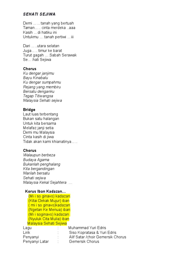 Doc Lirik Lagu Tema Merdeka 2015 Sehati Sejiwa Haf 8700 Academia Edu