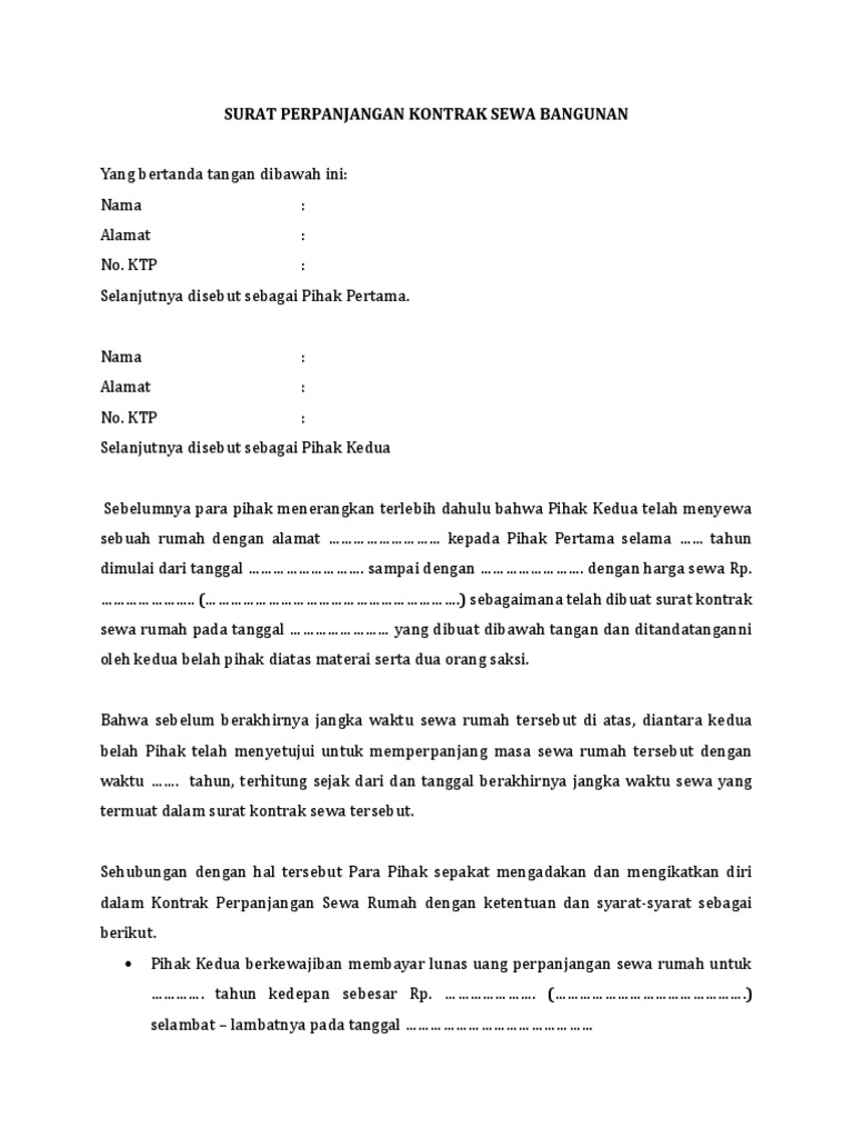 Contoh Surat Perpanjangan Kontrak Sewa Rumah