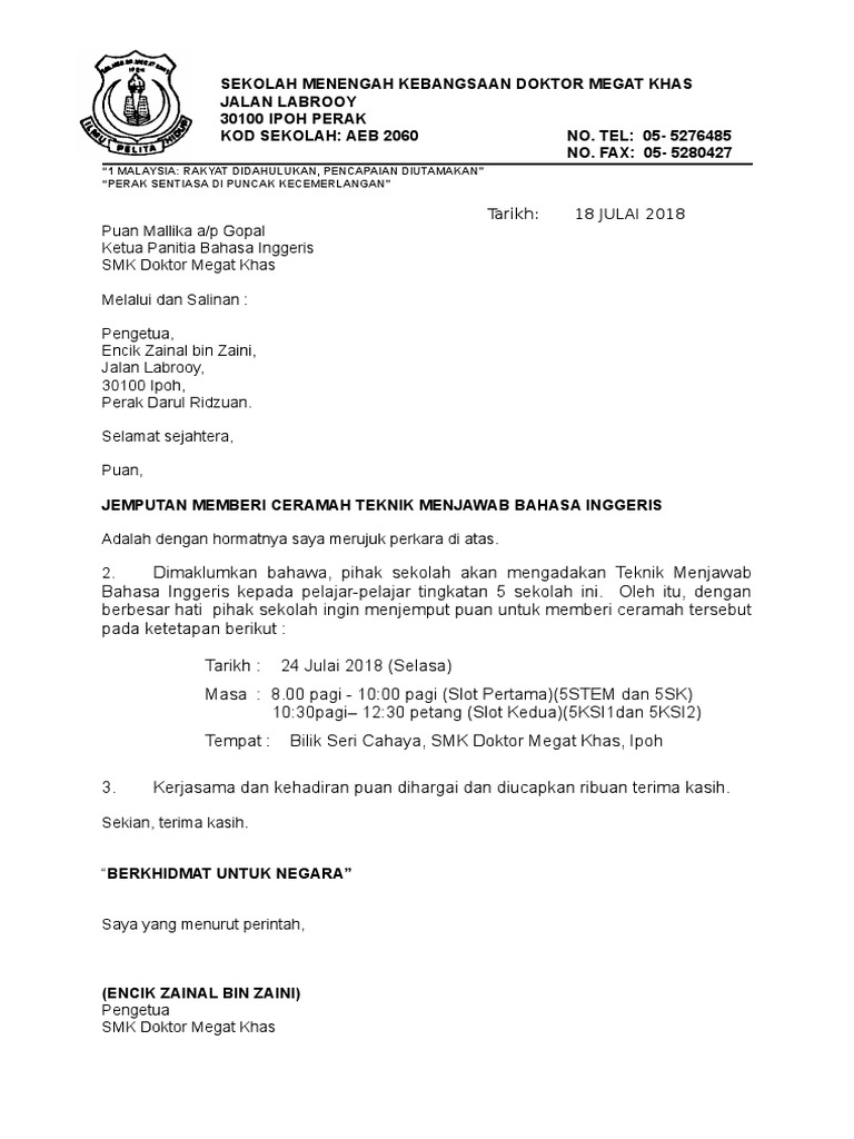 permohonan format surat rasmi kerajaan
