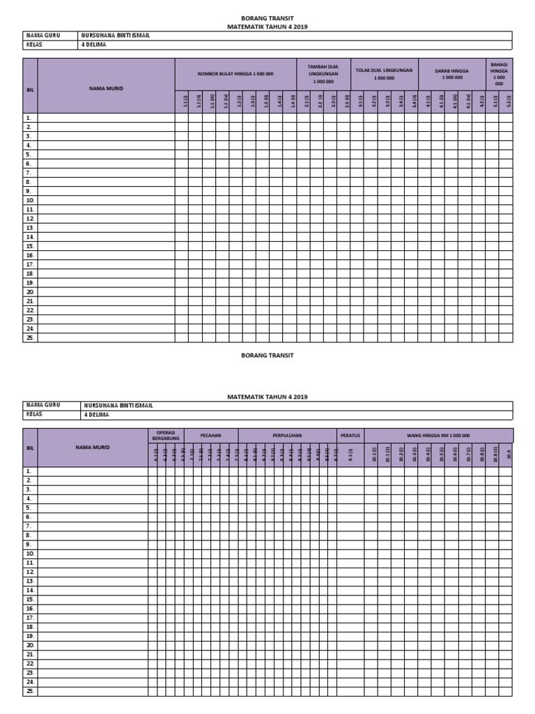 Template Offline Matematik Tahun 4 Borang Pelaporan Mt