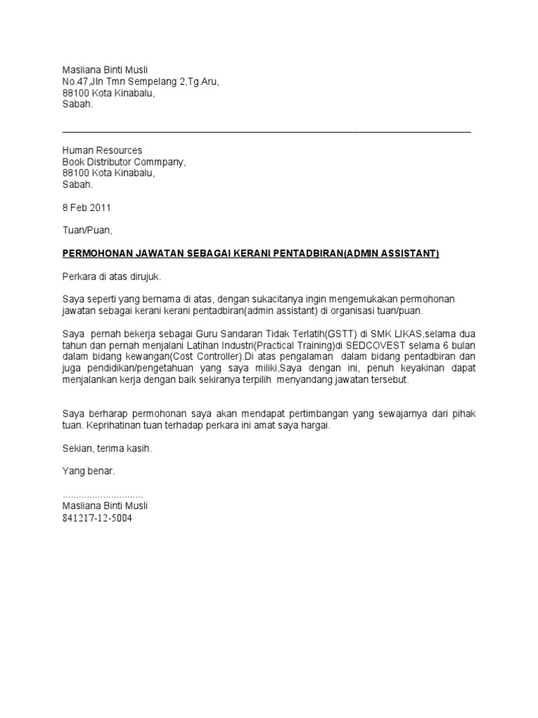 Contoh Surat Permohonan Kerja Kosong Assignment Insaniah