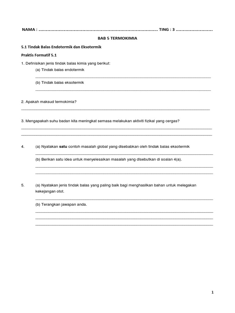 Bab 5 Termokimia 5 1 Tindak Balas Endotermik Dan Eksotermik Lessons Tes Teach
