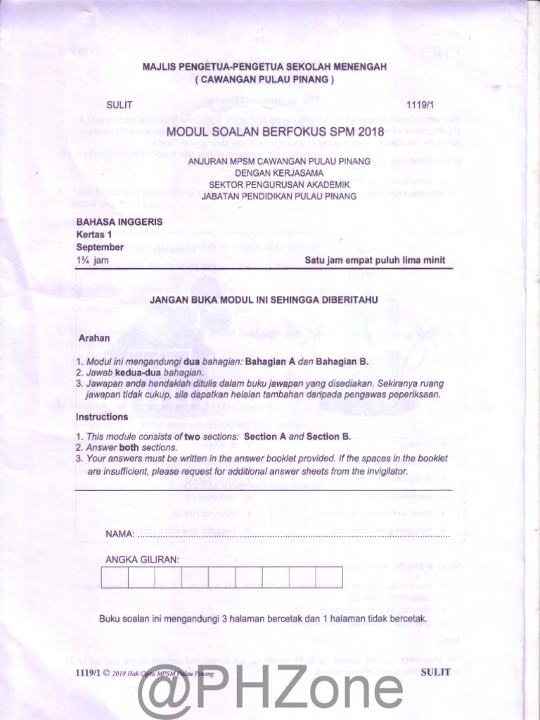 Soalan Percubaan Spm 2018 Bahasa Inggeris Pulau Pinang