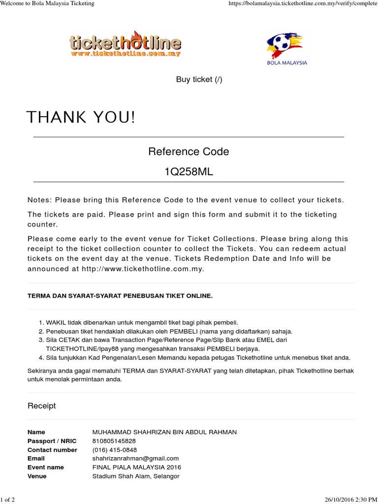 Buy Ticket Final Piala Malaysia 2016 Mynewsports Dot Com